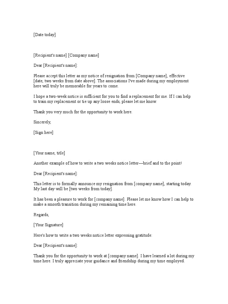 State your resignation with the date of there are two main reasons why you should write a two weeks' notice letter. Once you've given your two weeks notice to your boss in person, there's no need to submit an elaborate, written resignation. But i don't know the first thing about it. Is it acceptable to submit your 2 weeks notice immediately before going on a scheduled vacation? The change usually is completed within a. Moving to a new company is exciting, but don't let it distract you from paying your dues at your current role. Two weeks notice letter format 1. If you gave a two week notice in writing the employer should compensate you for that time although you don't work there. It'll boost your chances of getting good references down the road. The only thing your employer needs to know officially is when your last date will be. Writing a casual or lengthy letter. How important is a two weeks notice? Submitting a two weeks' notice is one of the most important parts of leaving your current job.