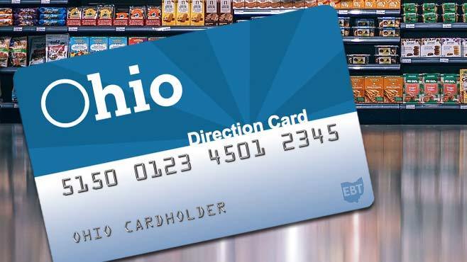 Benefits are distributed on an "ohio direction card" which can be used like a debit card at the grocery store.